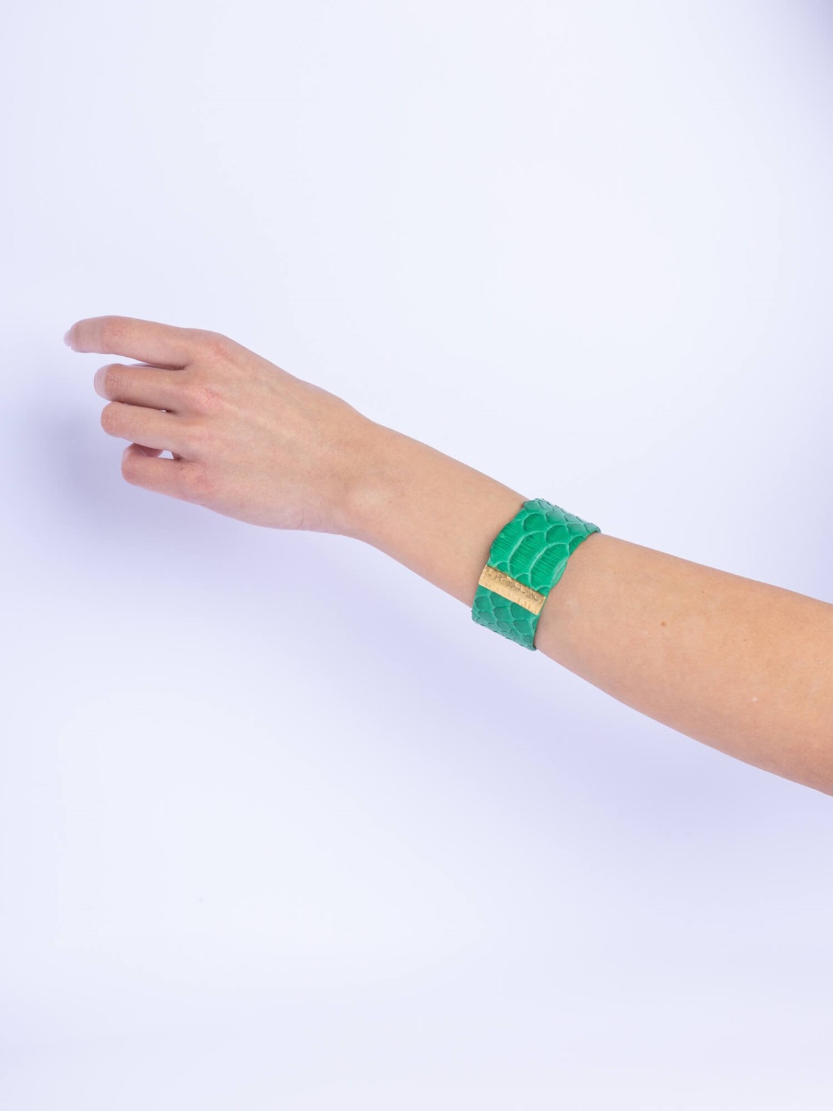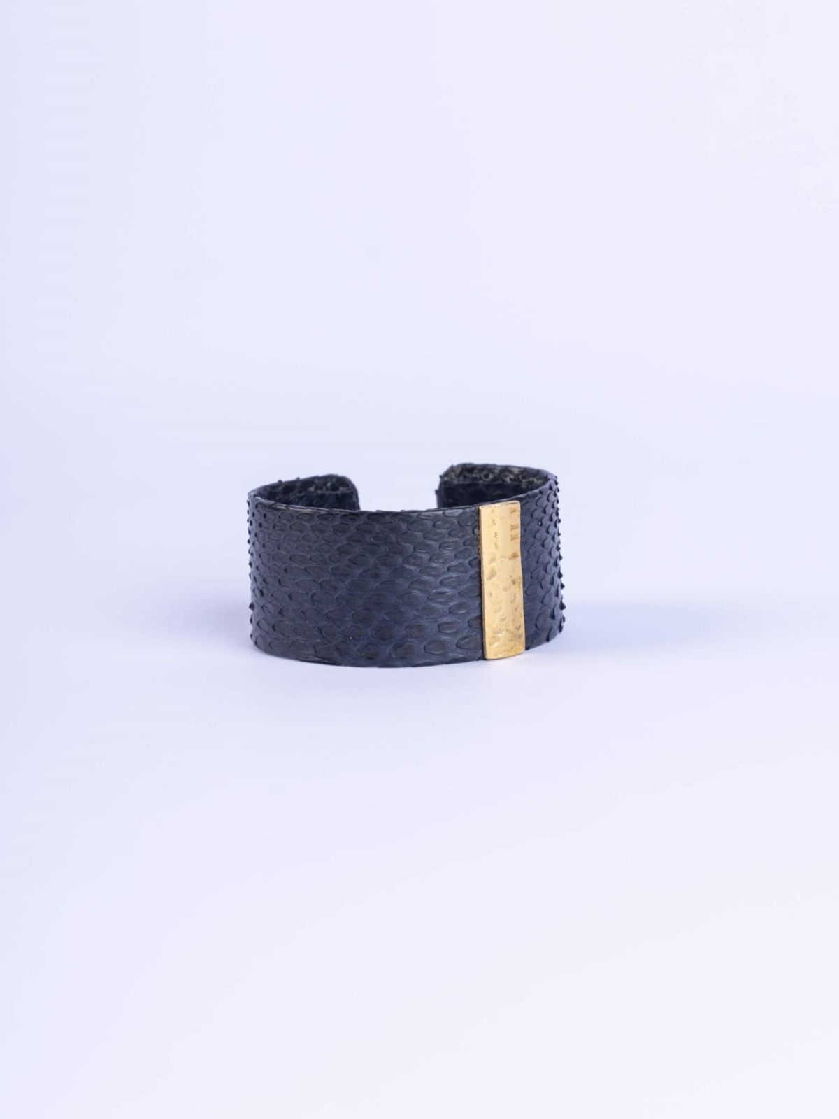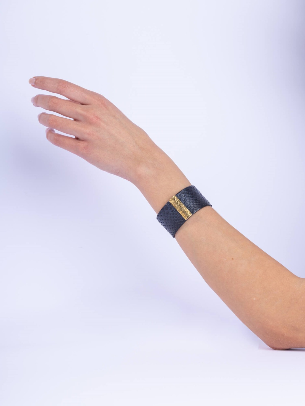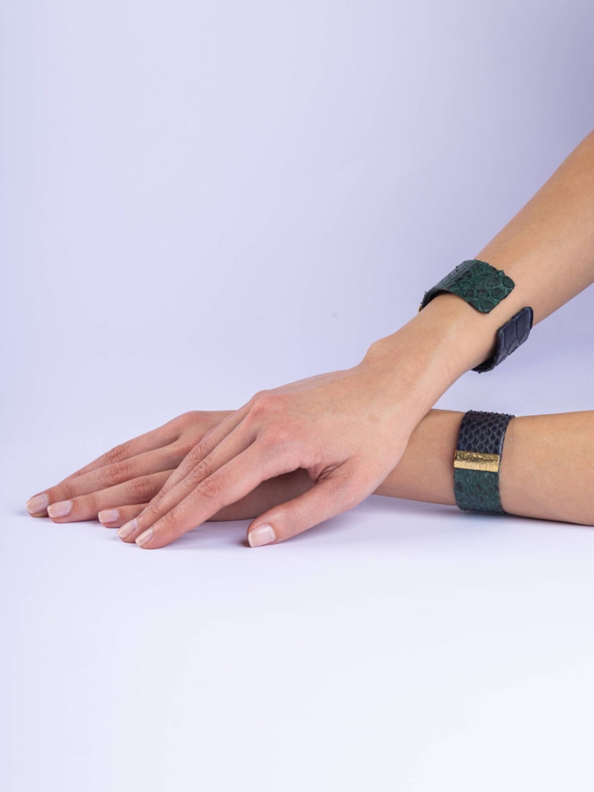 The Bold Bracelet, designed from real python leather, adds elegance to every look.