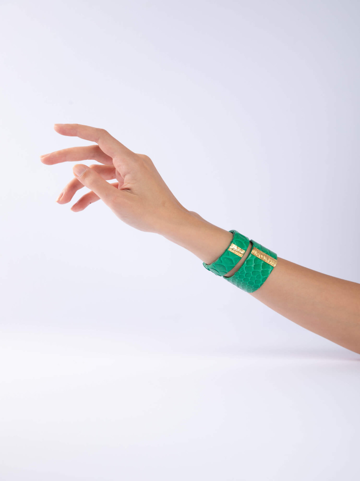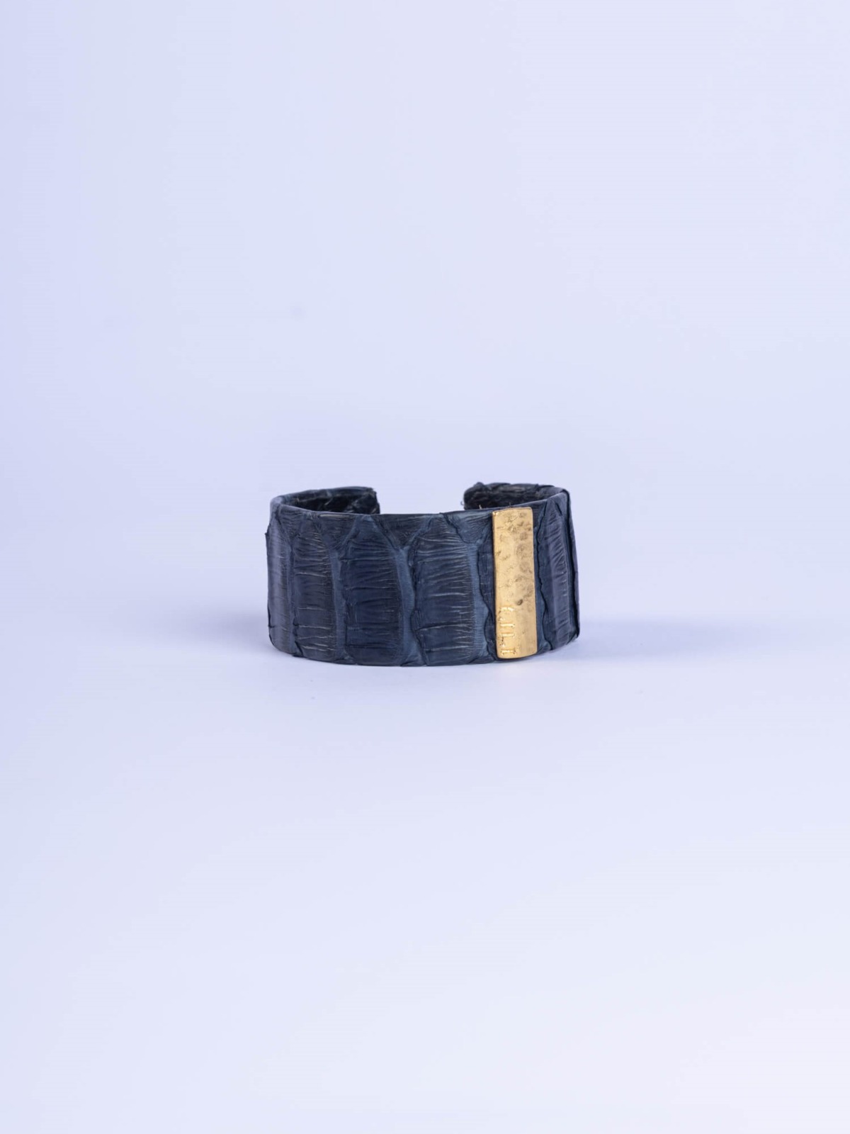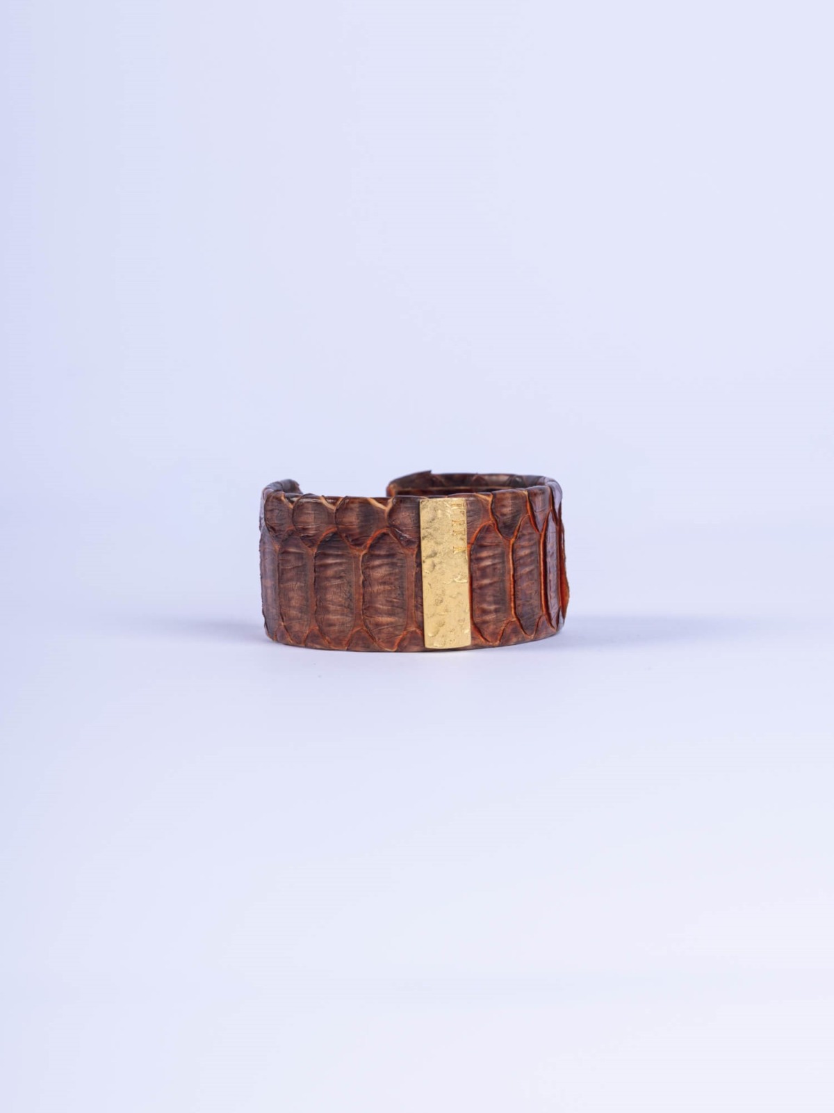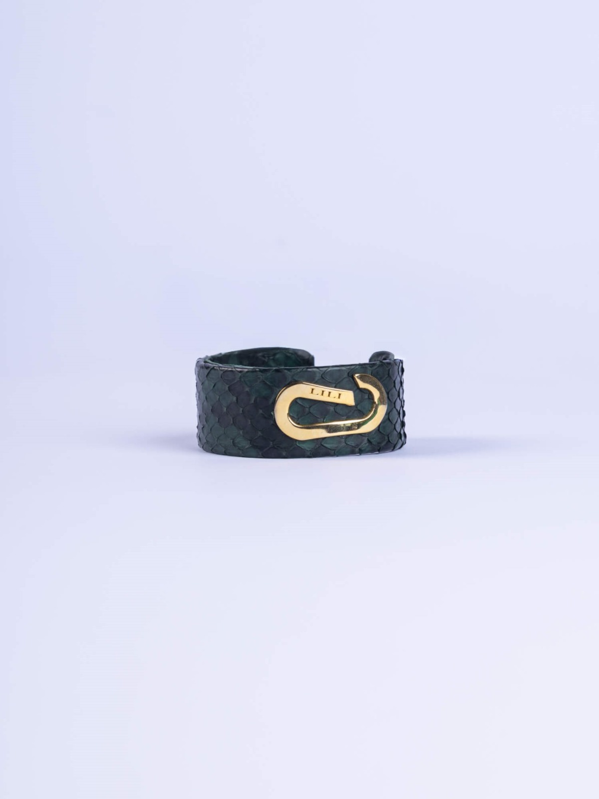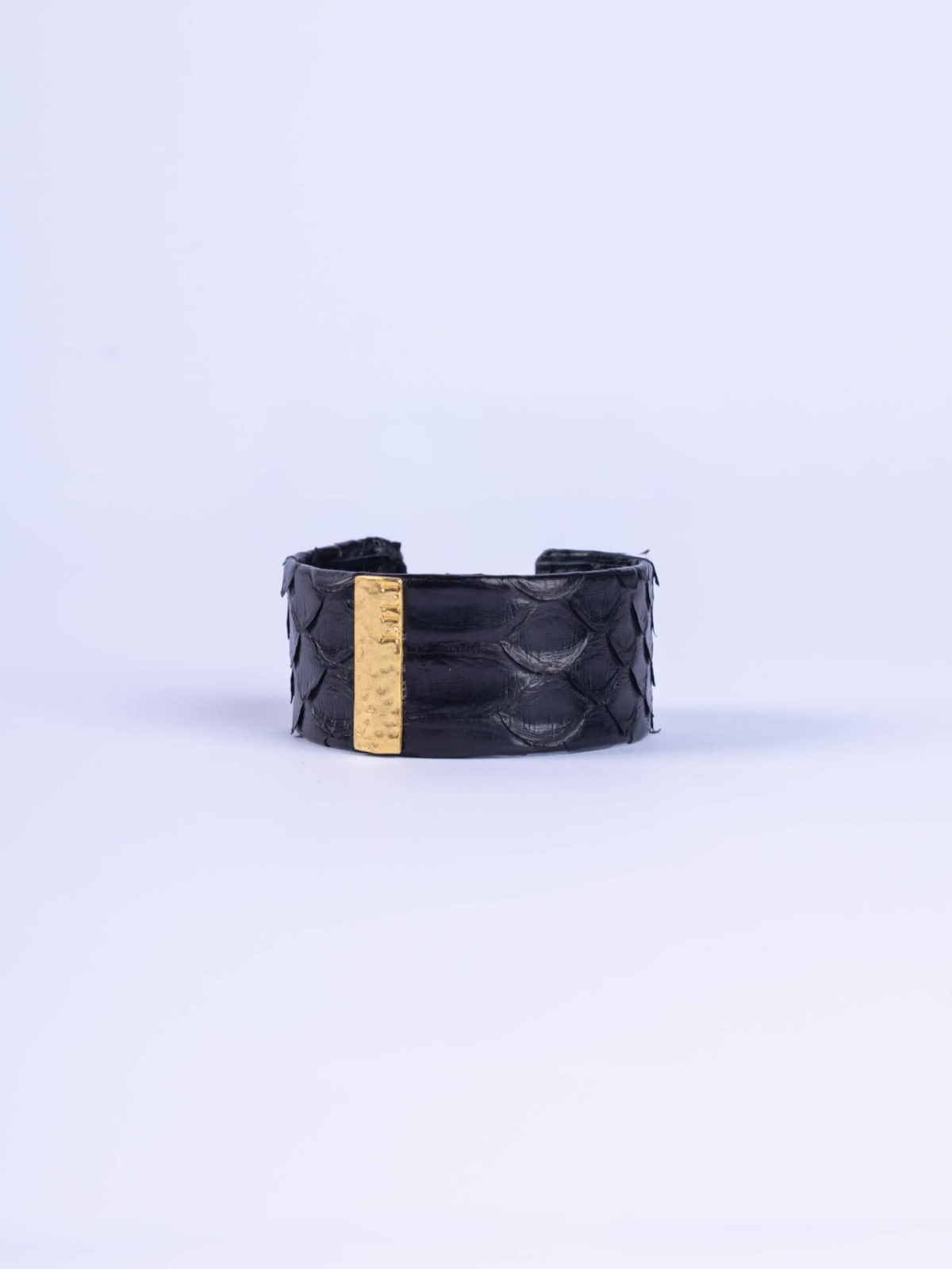 The Bold Bracelet, designed from real python leather, adds elegance to every look.