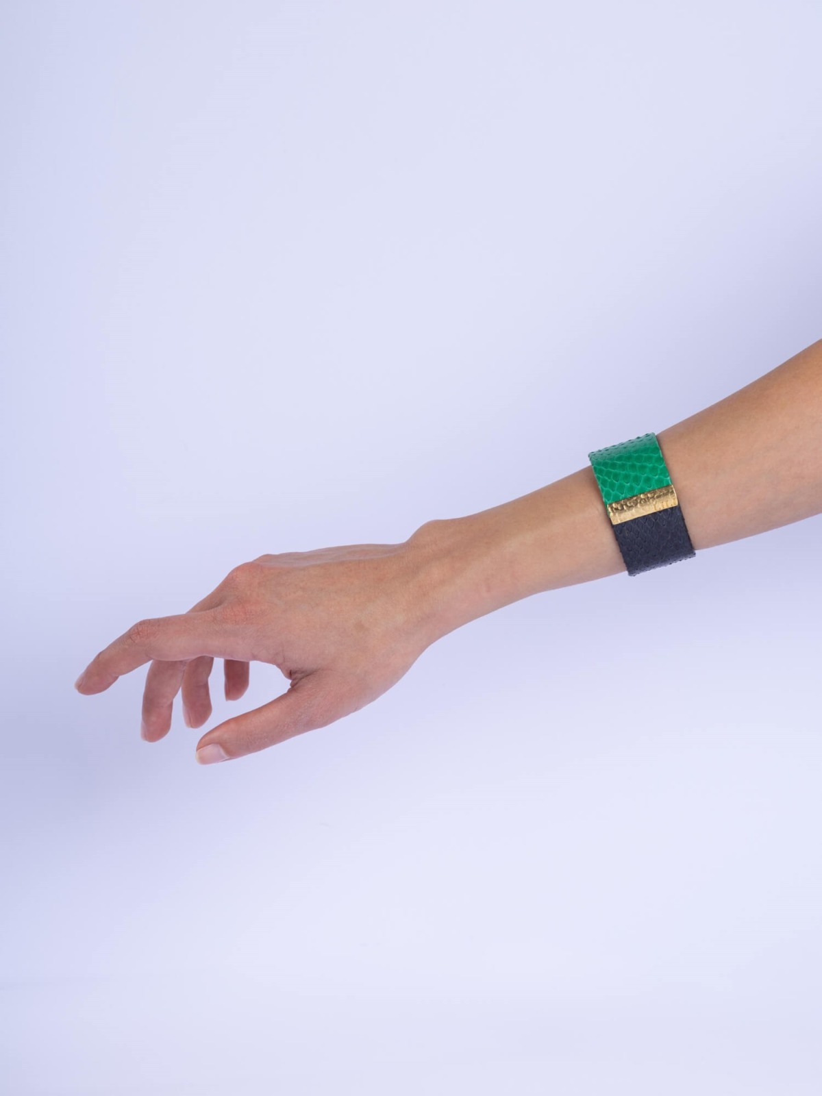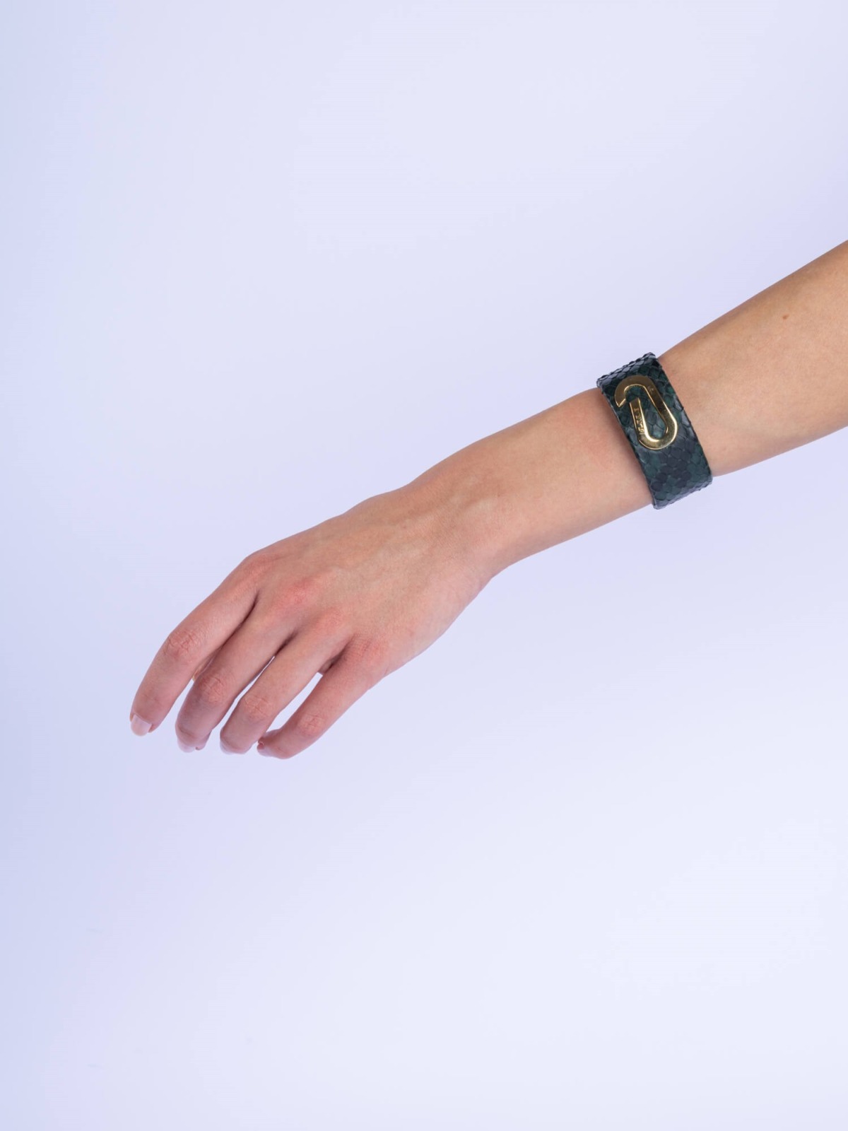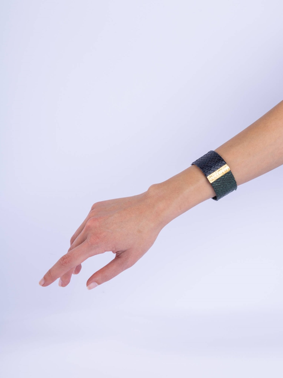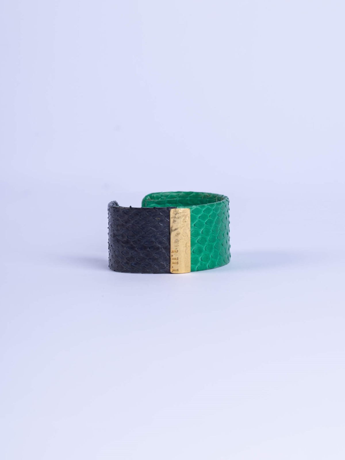 The Bold Bracelet, designed from real python leather, adds elegance to every look.