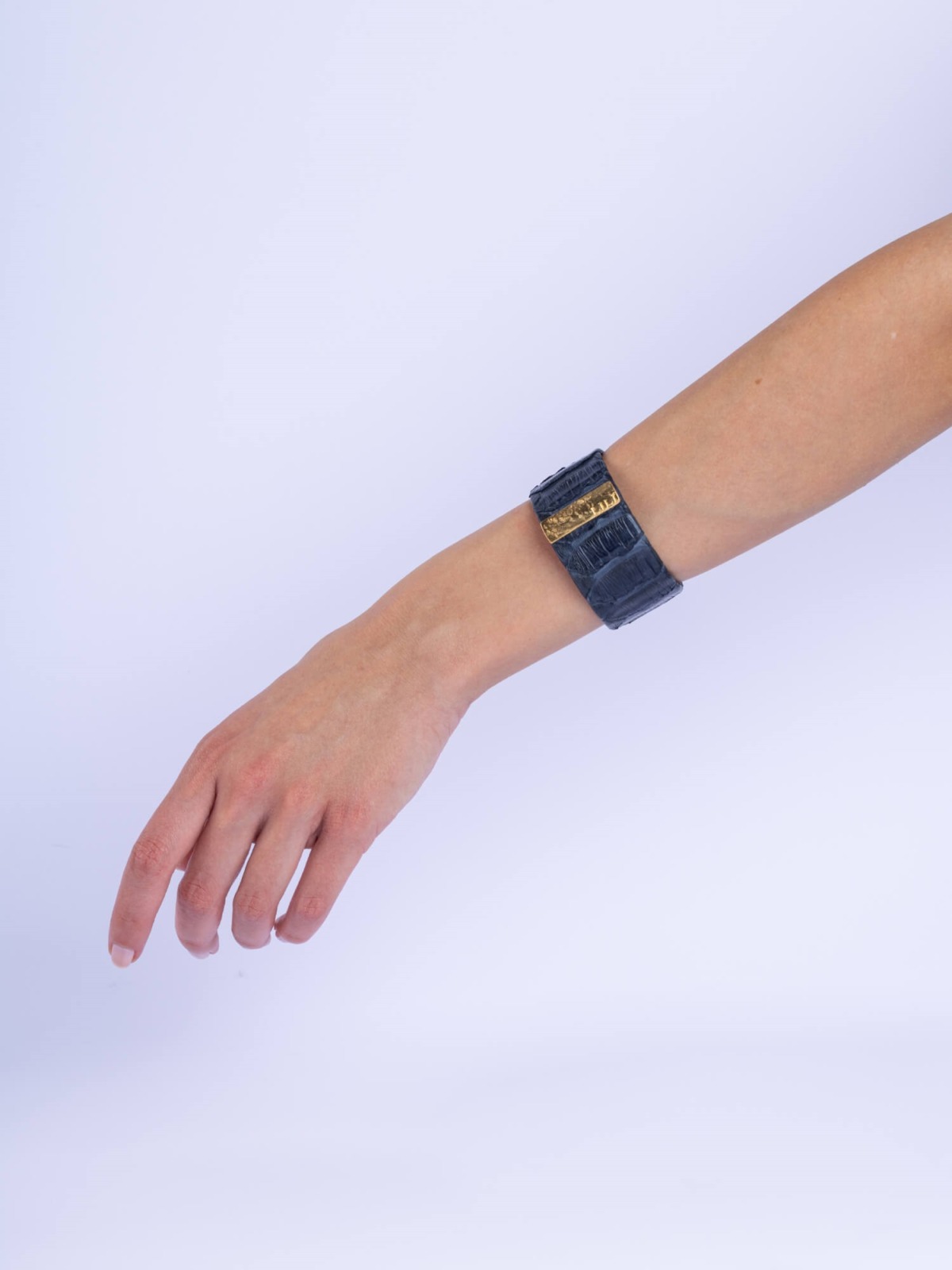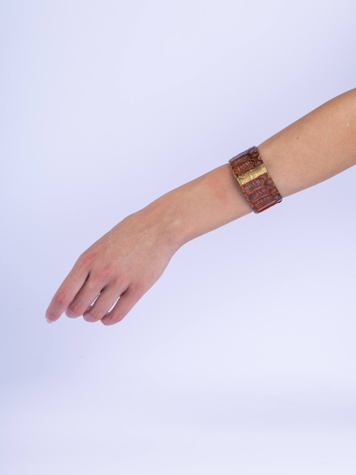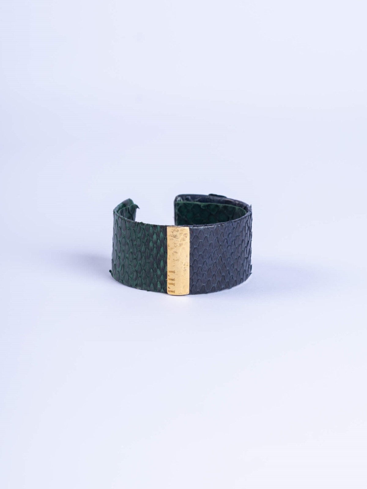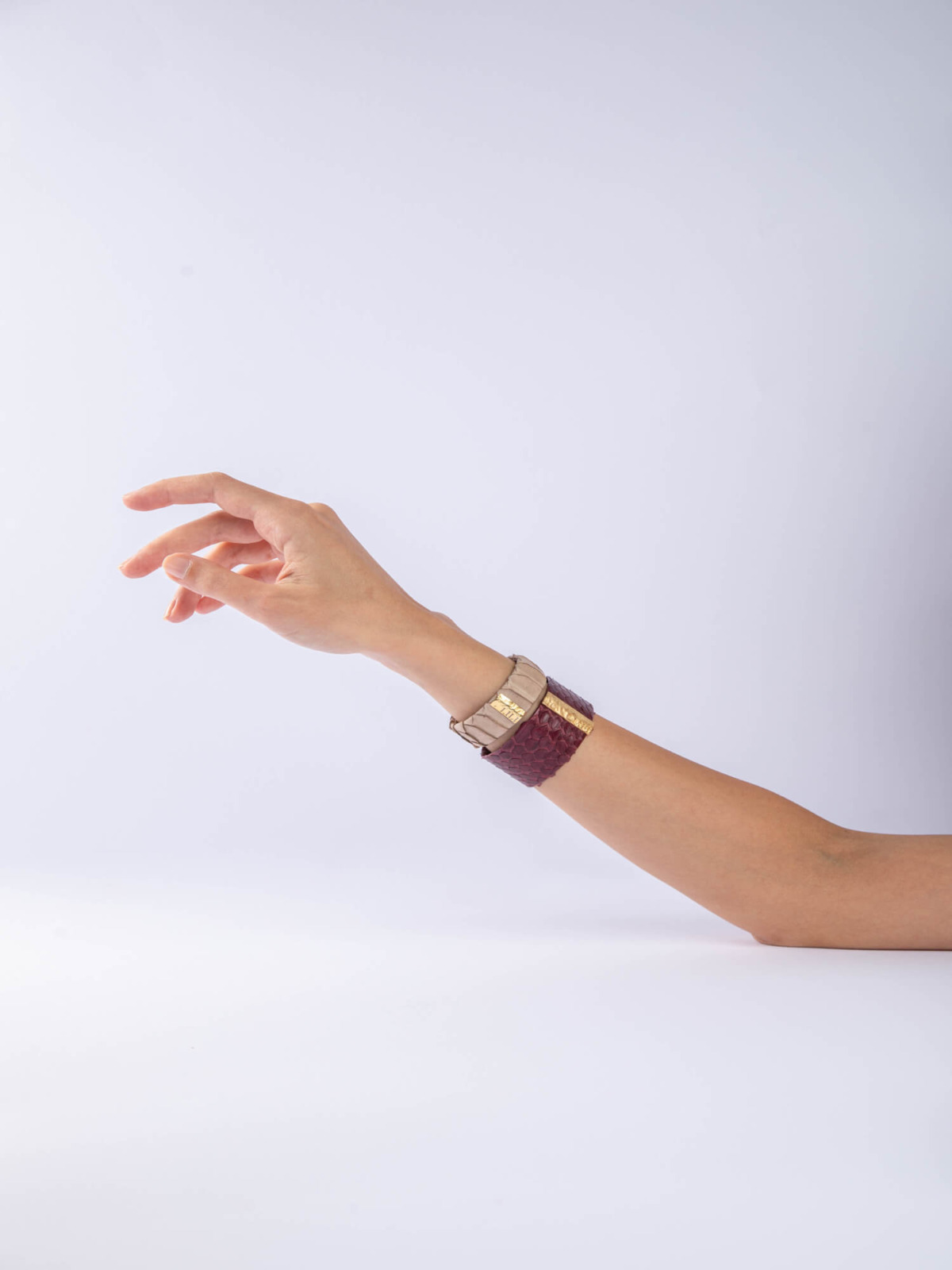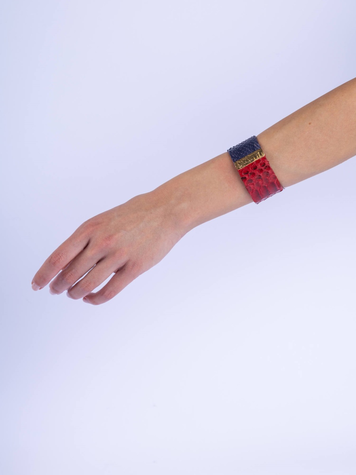 The Bold Bracelet, designed from real python leather, adds elegance to every look.