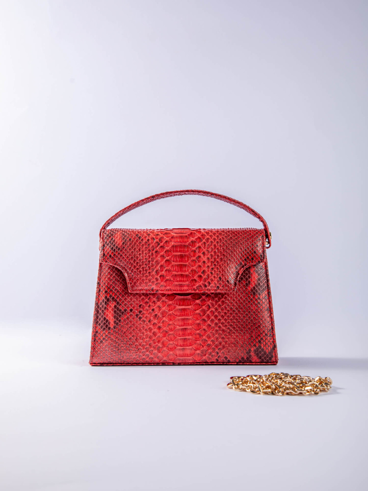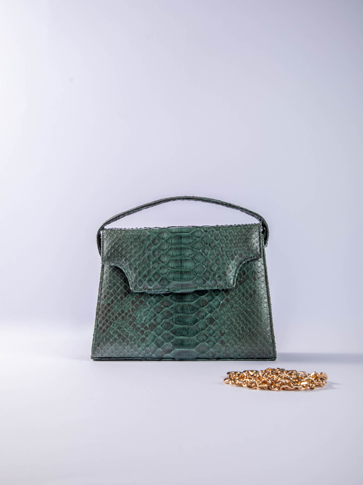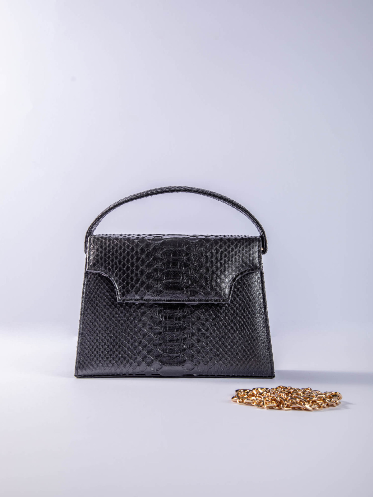The Date Bag, designed from real python leather, embodies luxury and timeless style.