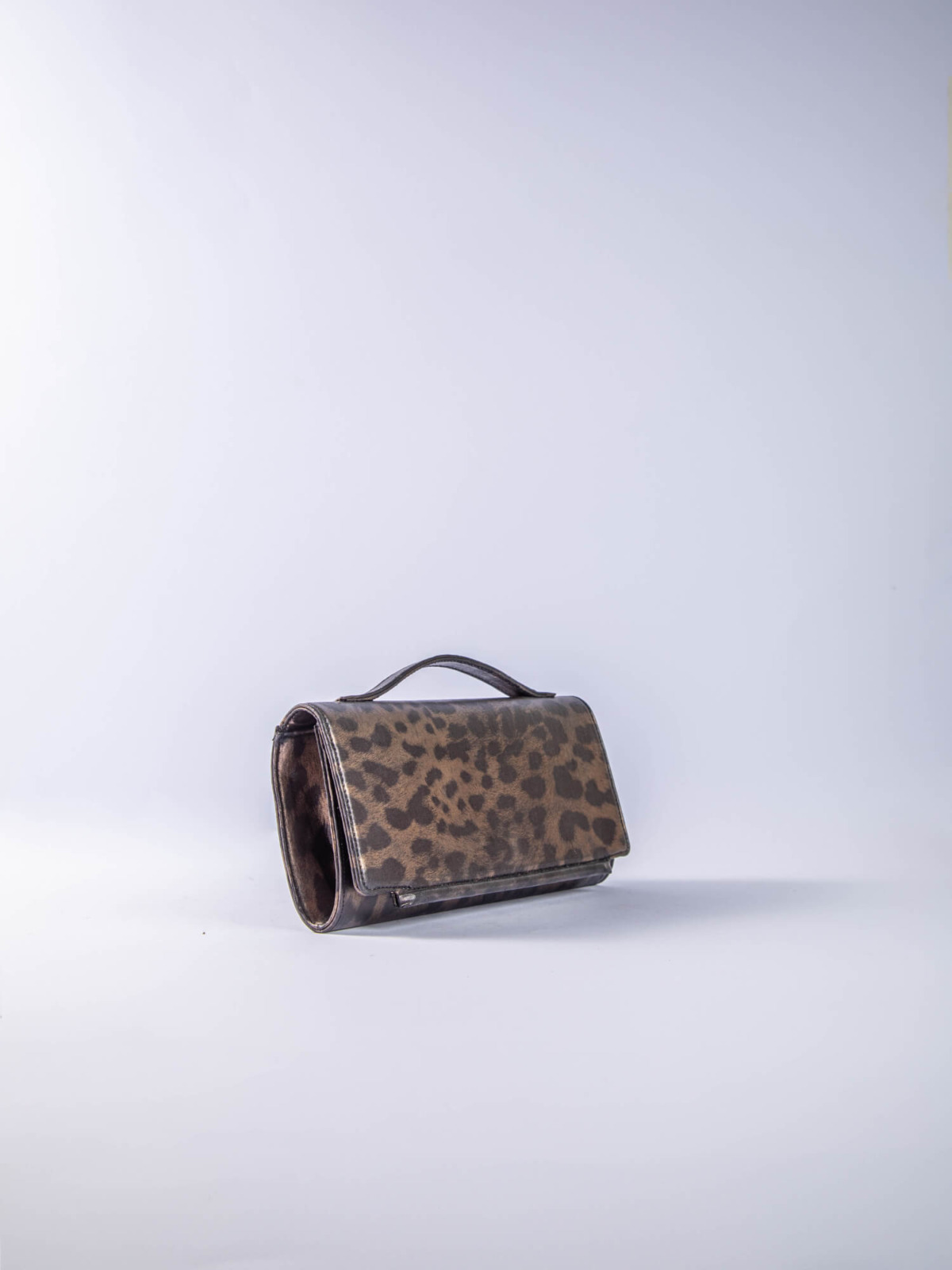 The Evening Charm Bag, designed in vegan leather with a tiger print.