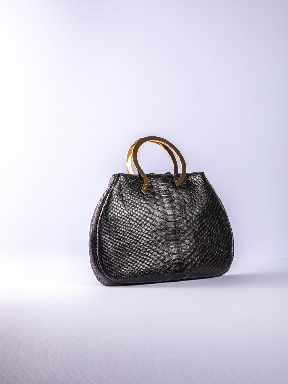 The Gold Bag, designed from genuine python and lizard leather, is a bold statement of texture and sophistication.