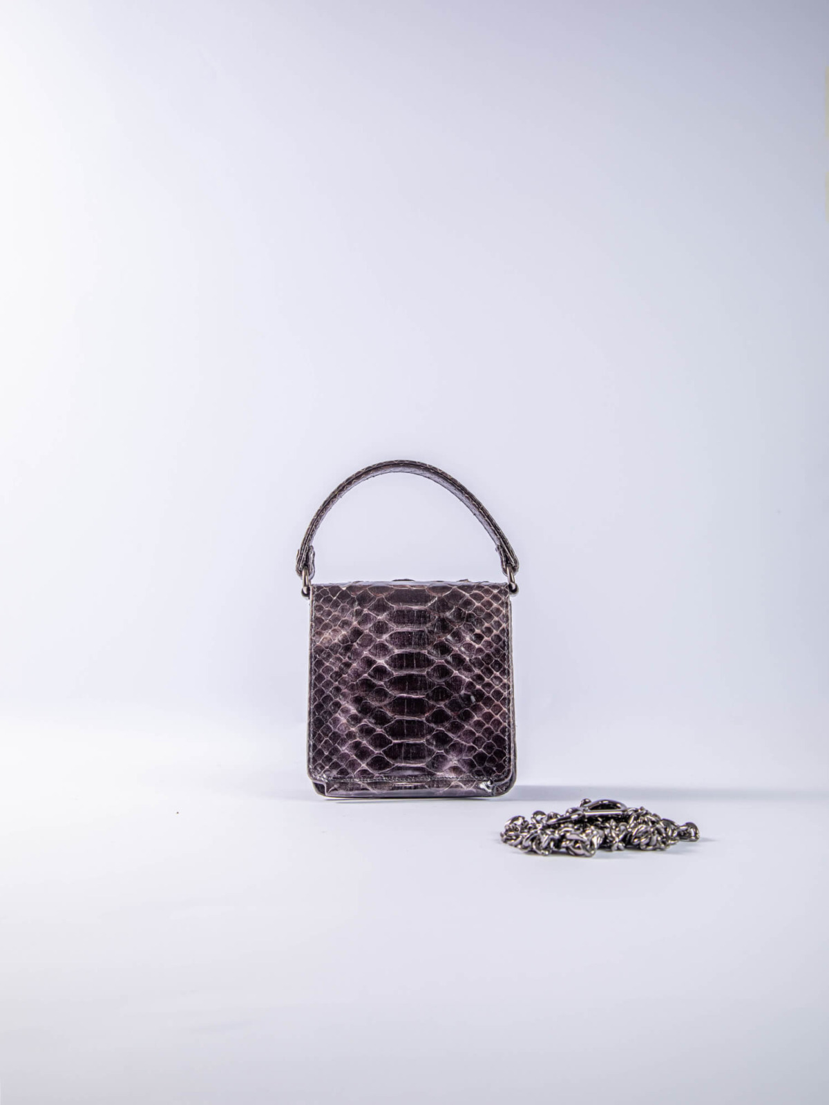 The Mini Charm Bag, designed from real python leather and vegan leather.