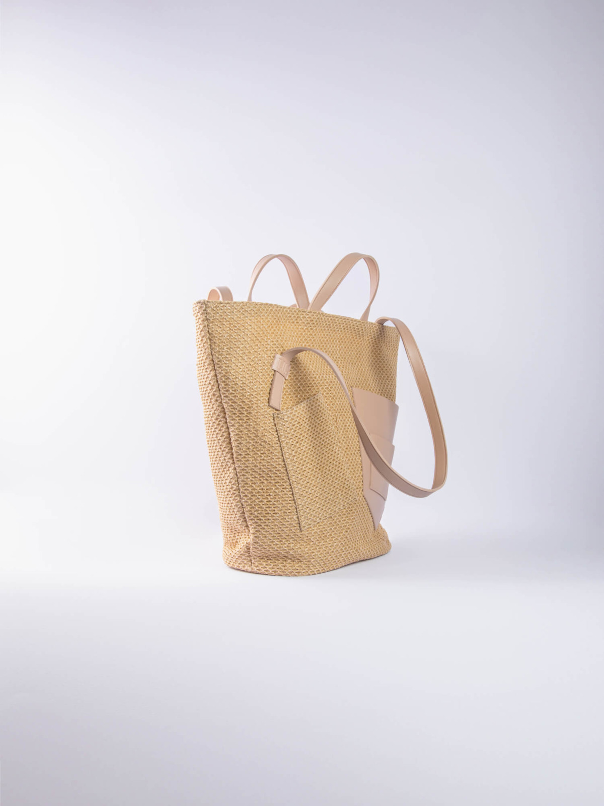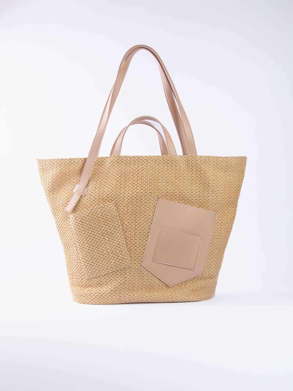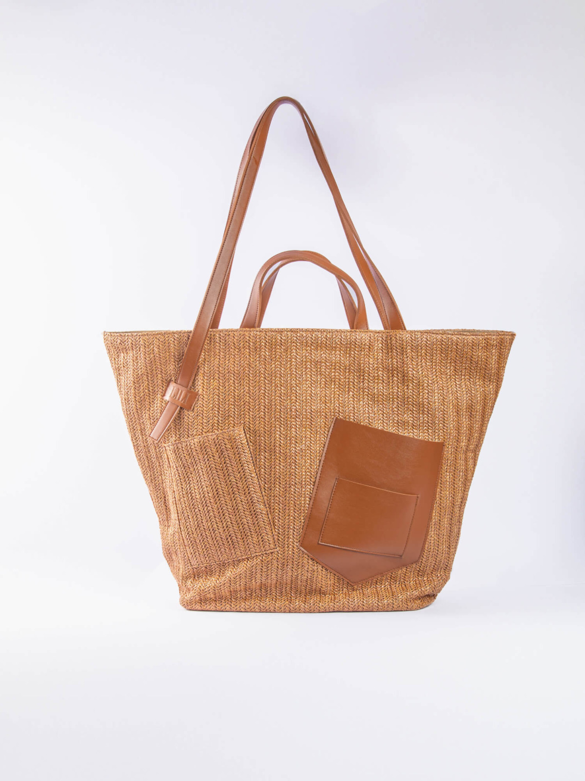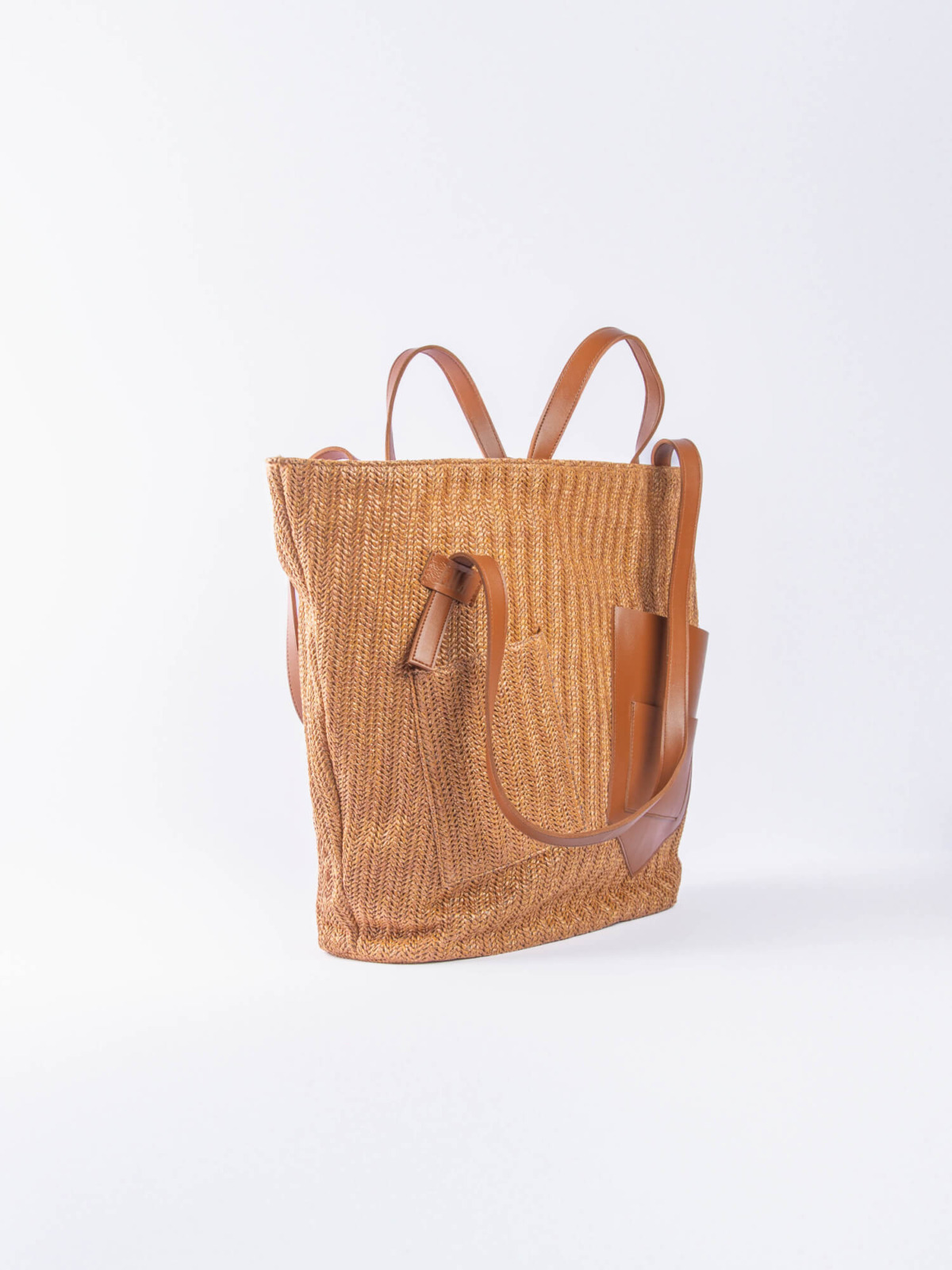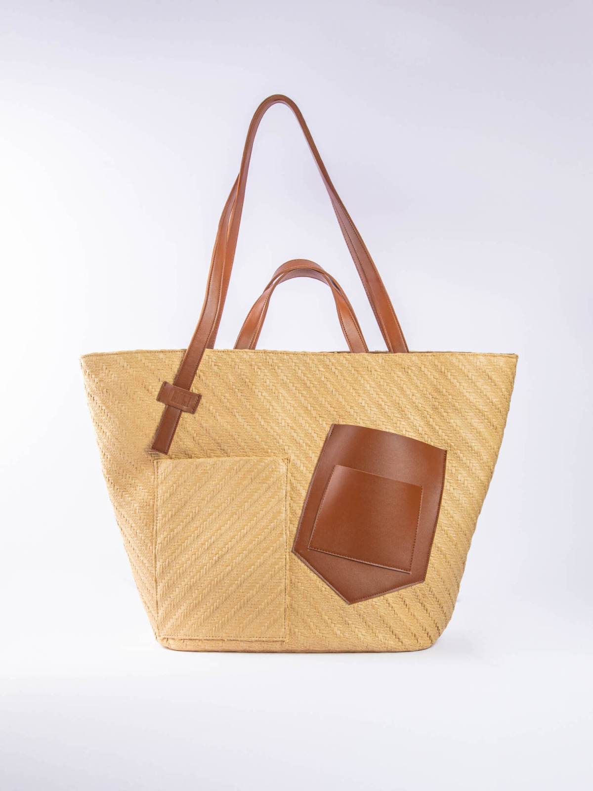 The Palm Beach Bag, designed from raffia and vegan leather.
