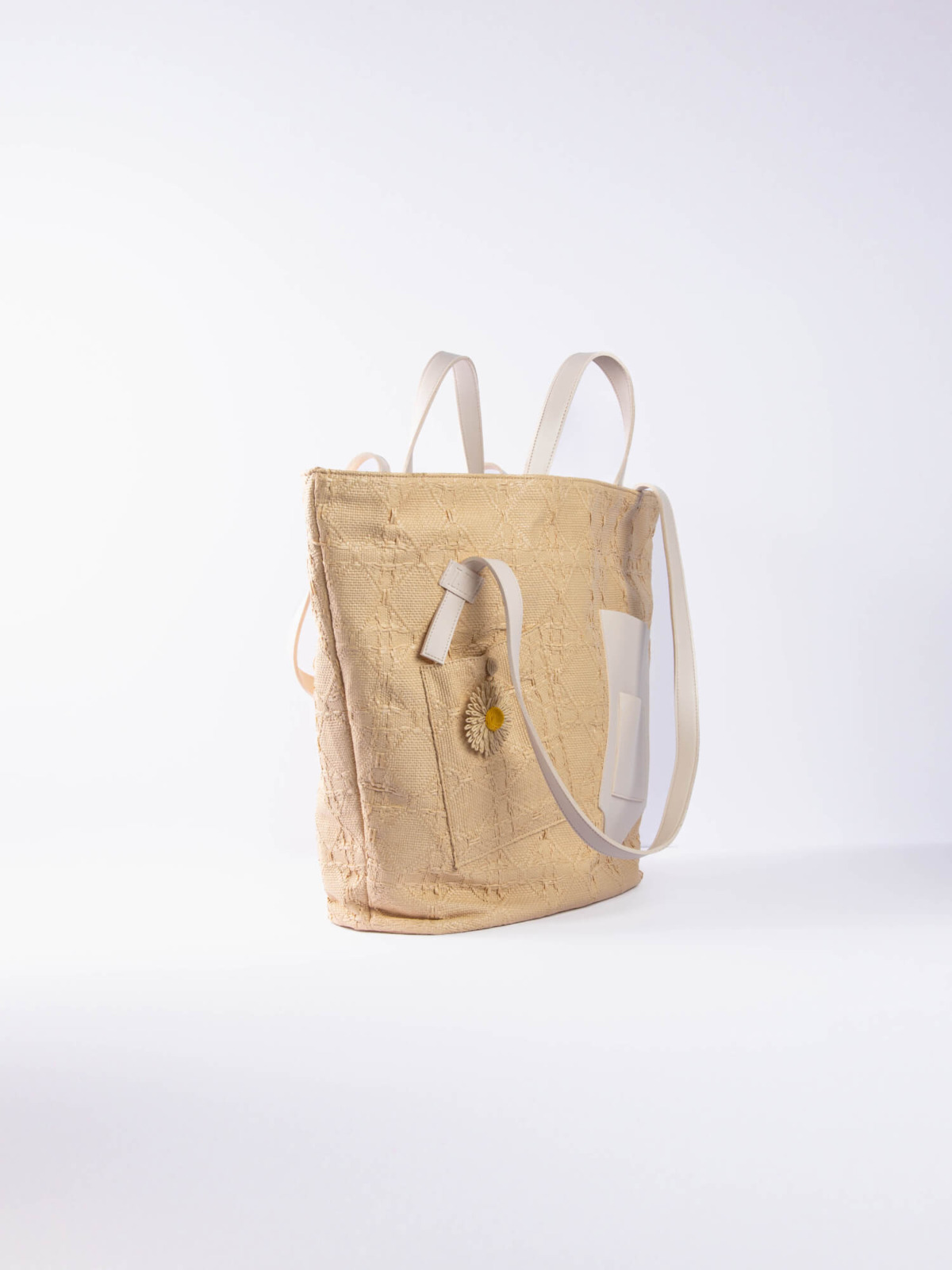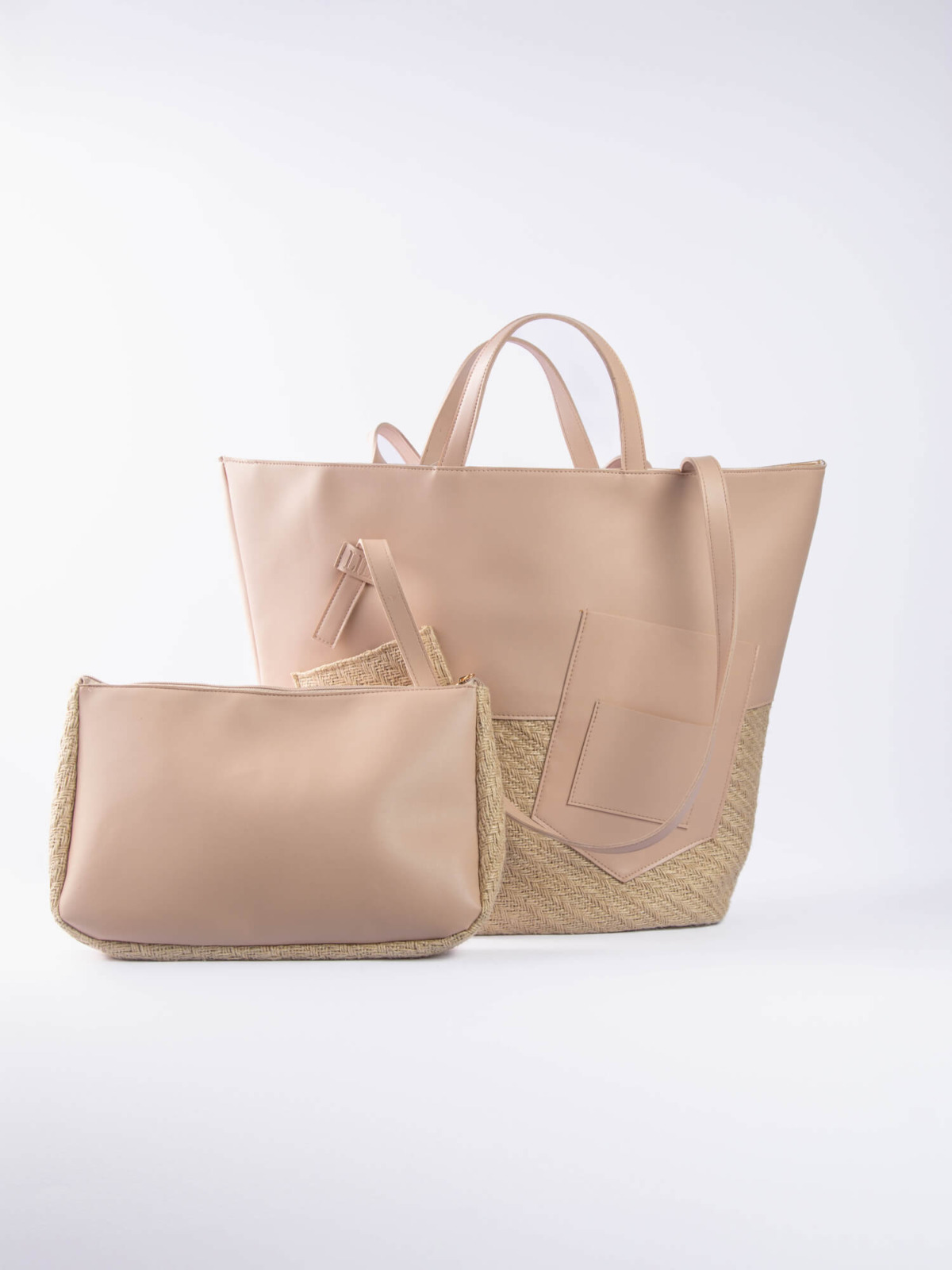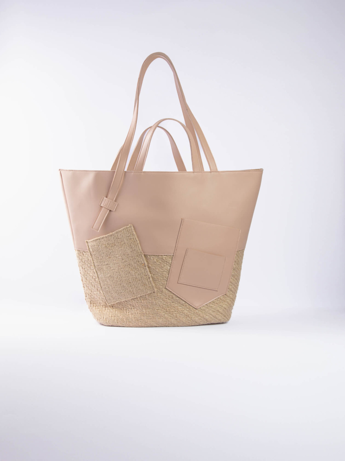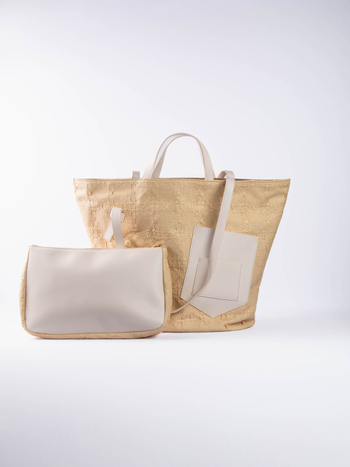 The Palm Beach Bag, designed from raffia and vegan leather.