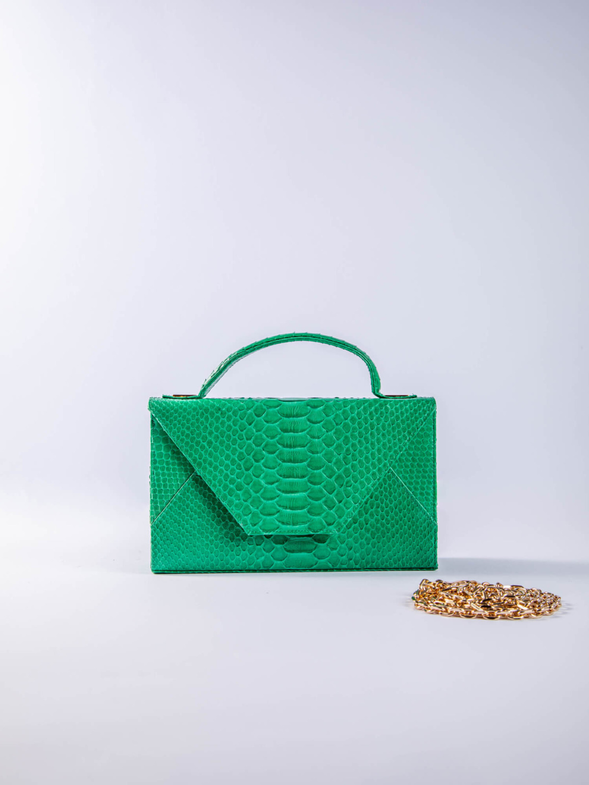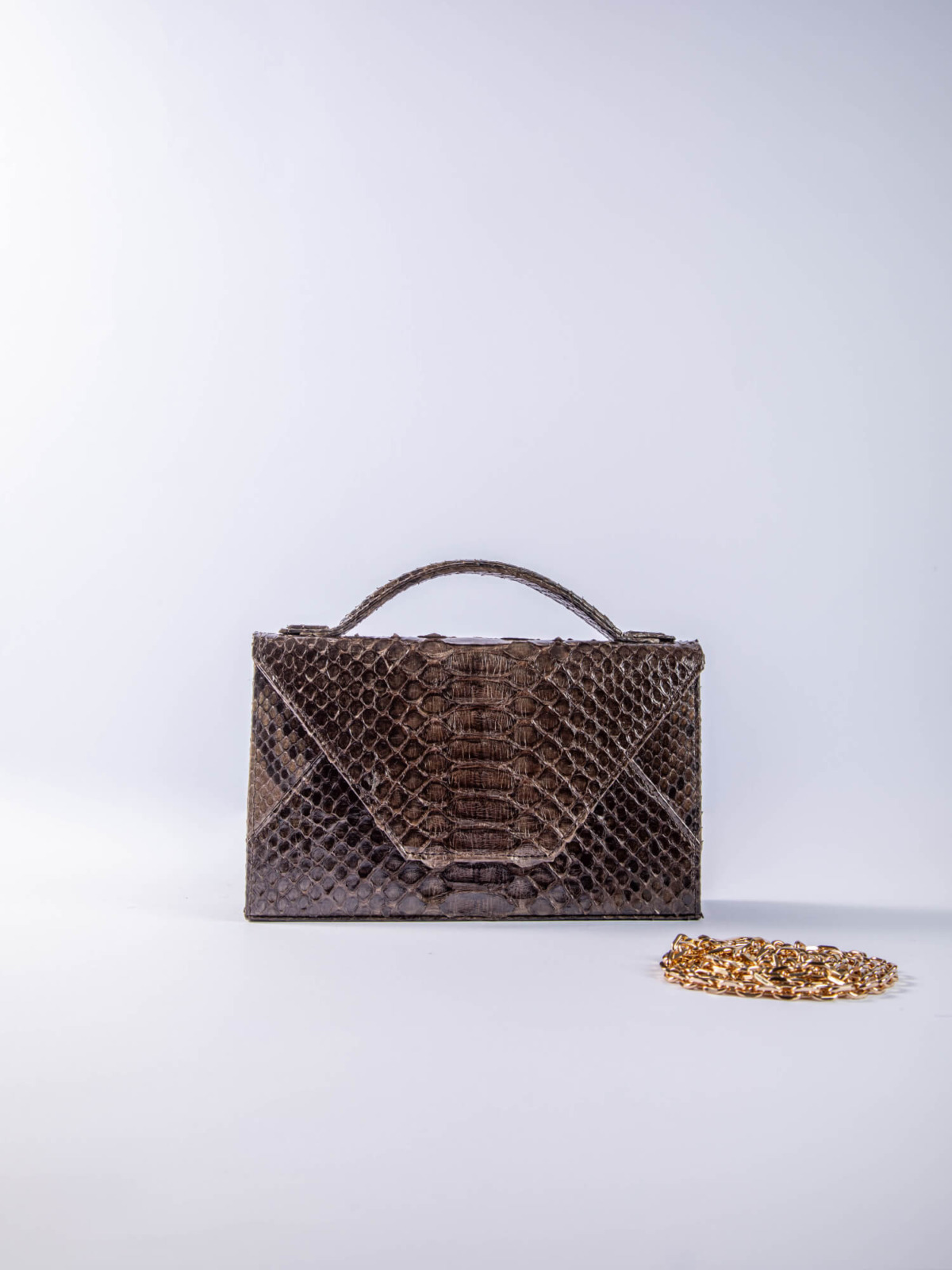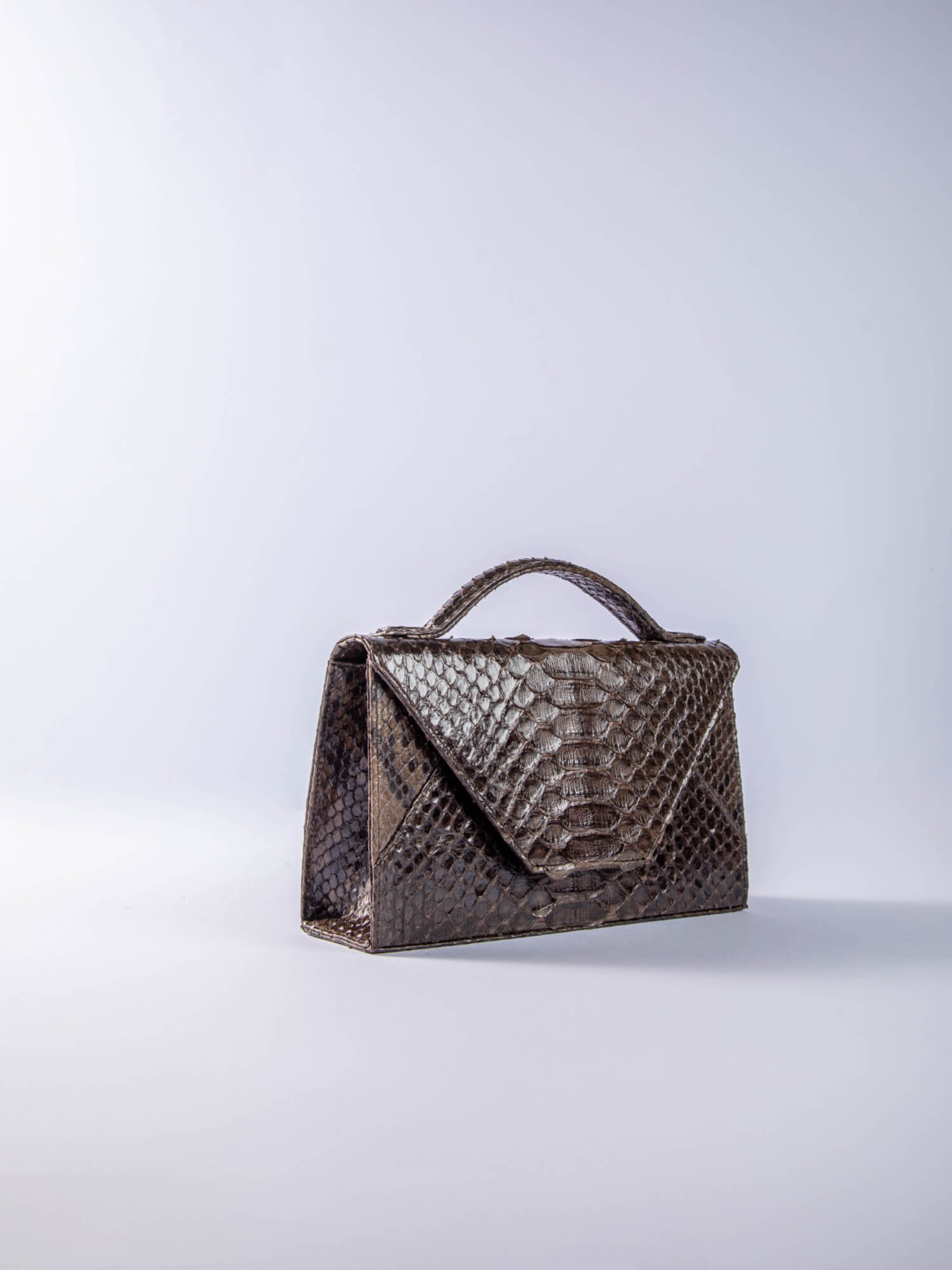 The Retro Bag, designed with real leather in python and scotch finishes, and also available in vegan leather.