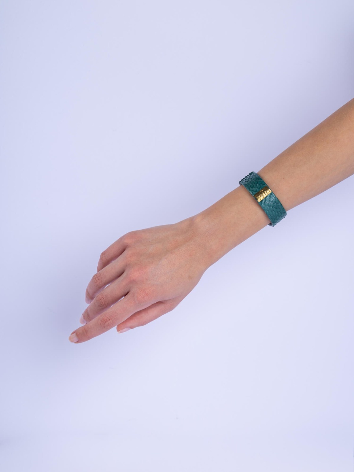 The Slim Bracelet, designed from real python leather, adds elegance to every look.